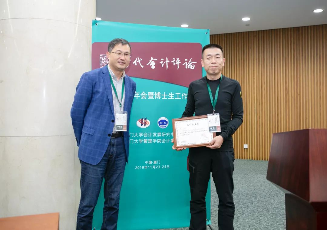 (颁奖嘉宾夏立军、最佳点评奖获得者陈运森)