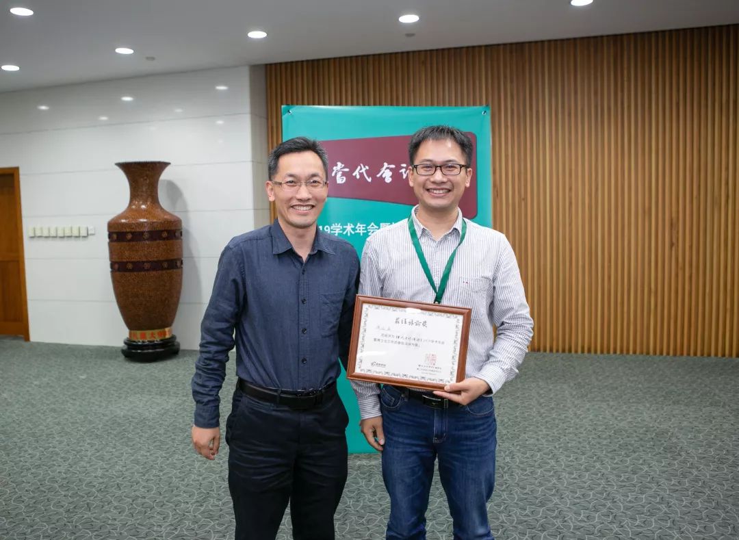 (颁奖嘉宾李增泉、最佳论文奖获得者唐亮)
