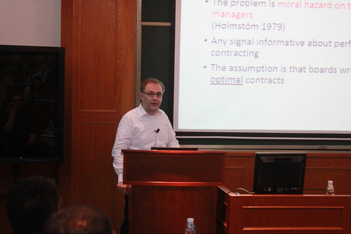 本次论坛可谓是一场思想交流与碰撞的盛宴,每场论文报告均“火花”四射、精彩纷呈。第一场报告中,北京大学博士生陈思报告了论文“TheEffect of SEC Comment Letters on CEO and CFO compensation”。研究发现,SEC对其发出重要问询函(materialcomment letter)的上市公司,市场反应将显著为负,并且CEO和CFO的薪酬也将降低。并且,这一现象在高成长企业、以及更为依赖外部融资的企业中会更为突出。由此表明,董事会在确定高管薪酬时,SEC的重要问询函有可能成为一个重要的考量因素。