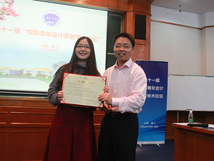 2016年4月9日上午,由厦门大学管理学院会计系、厦门大学会计发展研究中心和厦门大学财务管理与会计研究院联合承办的第十一届“校际青年会计学者学术论坛”在厦门大学群贤二201会议室顺利召开。来自北京大学、复旦大学、暨南大学、南开大学、中国人民大学和厦门大学等多所著名高校共93位学者出席了本次论坛。本次会议收到的论文,经过会议筹备委员会委员匿名评审,共有8篇论文入选大会报告。