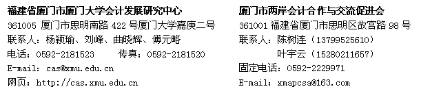为了促进海峡两岸暨香港、澳门会计实务和会计最新研究成果的交流,进一步增强交互学习,促进两岸会计学者和会计实务人员的相互了解,由中国会计学会主办,对台会计合作与交流基地(厦门市财政局)、厦门市两岸会计合作与交流促进会、厦门国家会计学院和厦门大学(会计发展研究中心、管理学院会计系、财务管理与会计研究院)联合承办的“海峡两岸暨香港、澳门会计准则研讨会”将于2013年12月19-20日在厦门举行。会议将邀请境内外知名学者作主题演讲,同时,邀请境内外知名学者对入选论文进行点评与讨论。现正式面向海内外高等院校、机构的会计专家、学者与实务工作者征文。