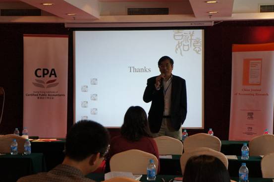 主题演讲部分,来自美国得克萨斯大学达拉斯分校的Suresh Radhakrishnan教授做了题为“China Accounting Research: Going Yonder and Further”的主题报告。Radhakrishnan教授从历史和制度层面解释了中国发展之谜,并指出了未来中国学术研究的方向。Radhakrishnan教授首先提出,中国一直被认为是弱制度环境国家的代表,其近几十年经济上的腾飞发展,在外界看来是一个谜。为什么弱制度环境的中国会实现如此惊人的发展呢?Radhakrishnan教授认为一个可能的解释就是历史。从历史的角度看,中国一直沿用中央政府统一控制、地方政府分权管理的制度。在这种制度下,地方政府的锦标赛竞争动机促进了经济的发展。据此,他提出了一系列未来可能的研究方向,包括业绩与晋升的关系,业绩指标特征和选择等。Radhakrishnan教授对中国制度的深刻剖析和对未来研究方向的精准把握,让与会学者获益良多。
