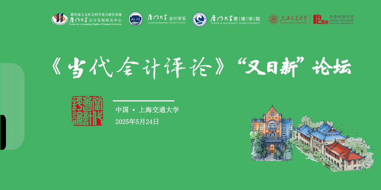 “苟日新,日日新,又日新”。2025年5月24日,《当代会计评论》“又日新”论坛在上海交通大学召开。本次会议由教育部人文社会科学重点研究基地厦门大学会计发展研究中心、《当代会计评论》编辑部、厦门大学会计学系、厦门大学管理学院和上海交通大学安泰经济与管理学院联合主办。来自安徽财经大学、东华大学、对外经济贸易大学、复旦大学、华南理工大学、江西财经大学、上海财经大学、上海交通大学、上海对外经贸大学、上海商学院、上海外国语大学、西南大学、厦门大学、新疆财经大学和同济大学等十五所高校六十位专家、青年学者参与本次会议。