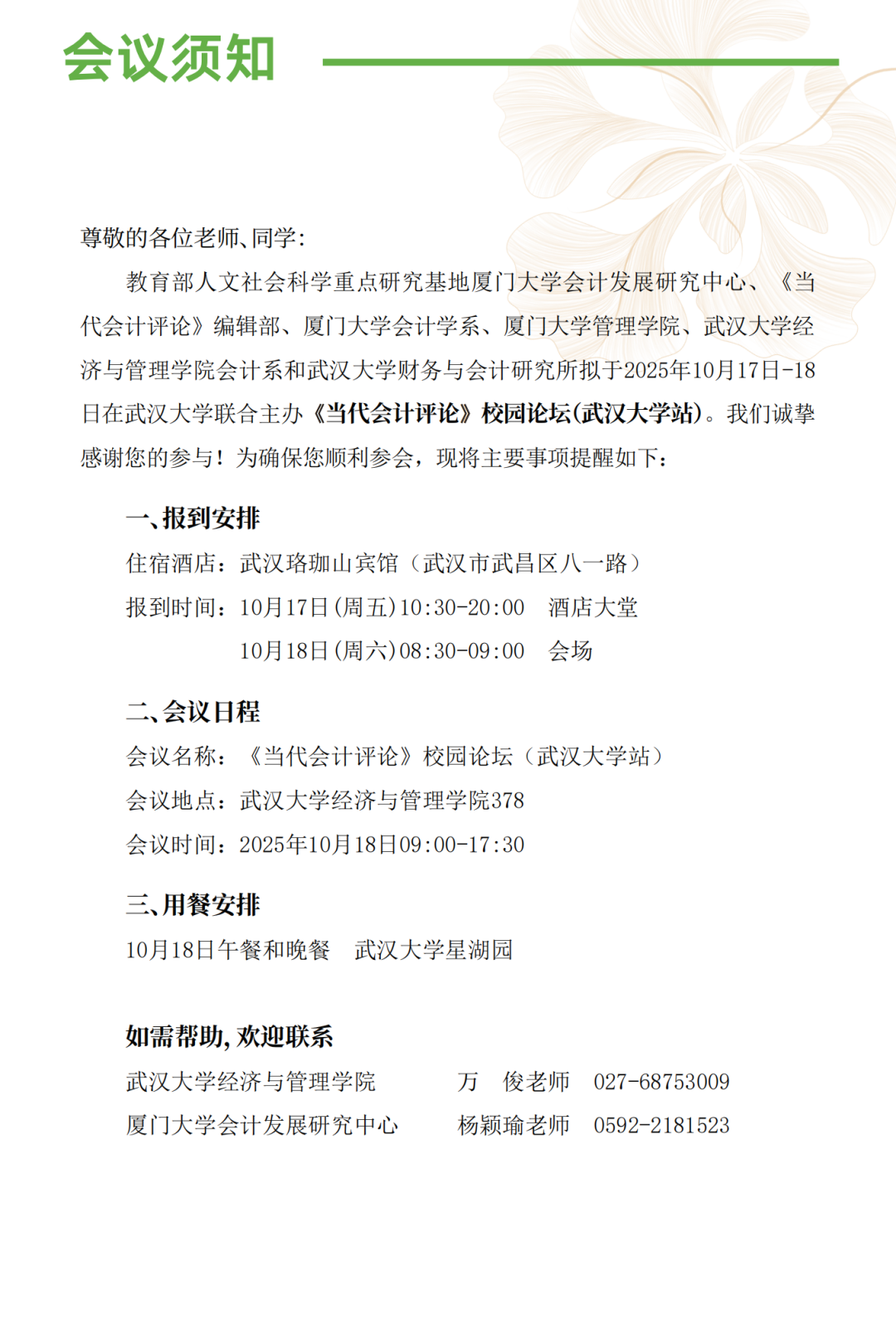 日程安排 | 《当代会计评论》校园论坛(武汉大学站)
