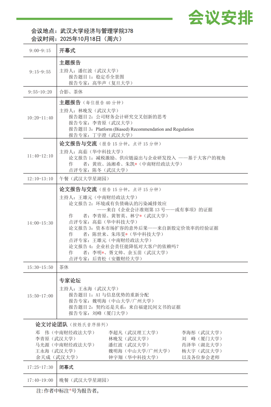 会议地点:武汉大学经济与管理学院378