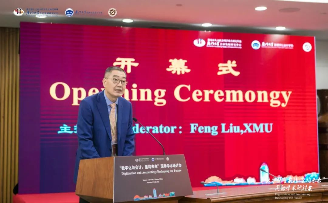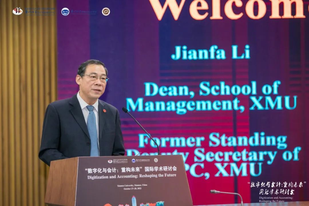 开幕式由厦门大学党委原常务副书记、管理学院院长李建发教授致辞。他首先对线上以及莅临线下的各位专家学者和同学表示了感谢和欢迎。他就本次研讨会的筹备背景进行了介绍。随着数字经济的蓬勃发展,数字化浪潮重新定义了社会生产生活方式和商业运行方式,对会计学科产生了深远影响,带来了会计的变革。面对会计与数字化融合的必然趋势,会计要主动应用数字化和信息技术。因此,研讨会邀请来自准则制定部门、学术界、实务界等专家学者,通过研讨和交流,开拓新的思路,推动会计学科在数字化革命中“行稳致远”。