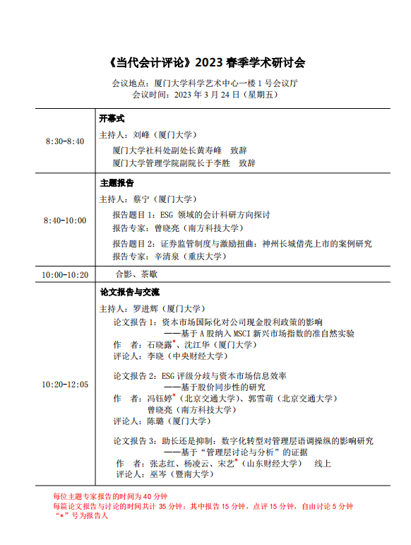 会议议程 | 《当代会计评论》2023春季学术研讨会
