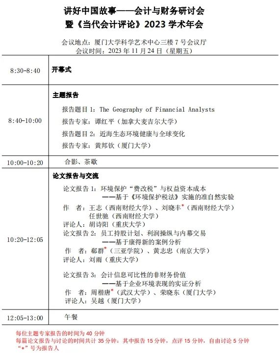 日程安排 | 讲好中国故事——会计与财务研讨会暨《当代会计评论》2023学术年会