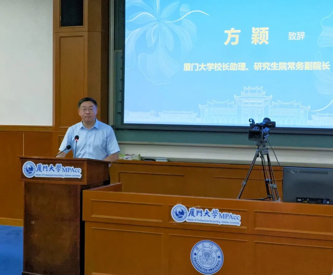 决赛开幕式由厦门大学党委原常务副书记、管理学院院长李建发教授主持。厦门大学校长助理、研究生院常务副院长方颖教授在致辞中表示,希望通过大赛的成功举办,加强我校和全国兄弟高校相互之间的学术交流与合作,提高会计硕士专业学位研究生学生的专业实践能力,提高专业学位研究生人才的培养质量。财政部会计司副司长、会计教指委指导中心副主任、中国会计学会秘书长、会计教指委委员吴祥云博士在线上致辞中表示,财政部会计司作为指导全国会计人才队伍建设、组织开展会计专业学位研究生教育工作的部门,将一如既往支持国内各科研院所积极探索高质量会计人才培养模式。会计教指委副主任委员、中国人民大学王化成教授,会计教指委秘书长、中国人民大学支晓强教授,14家联合发起单位委派的评委专家,9位来自实务界的评委专家,厦门大学管理学院副院长于李胜教授,厦门大学管理学院党委郑碧娇副书记、戴蓥副书记,厦门大学管理学院会计学系副主任张国清教授、蔡宁教授,以及会计教指委秘书处老师、各参赛团队指导老师、参赛队员等,以线上线下相结合的方式参加开幕、闭幕仪式。