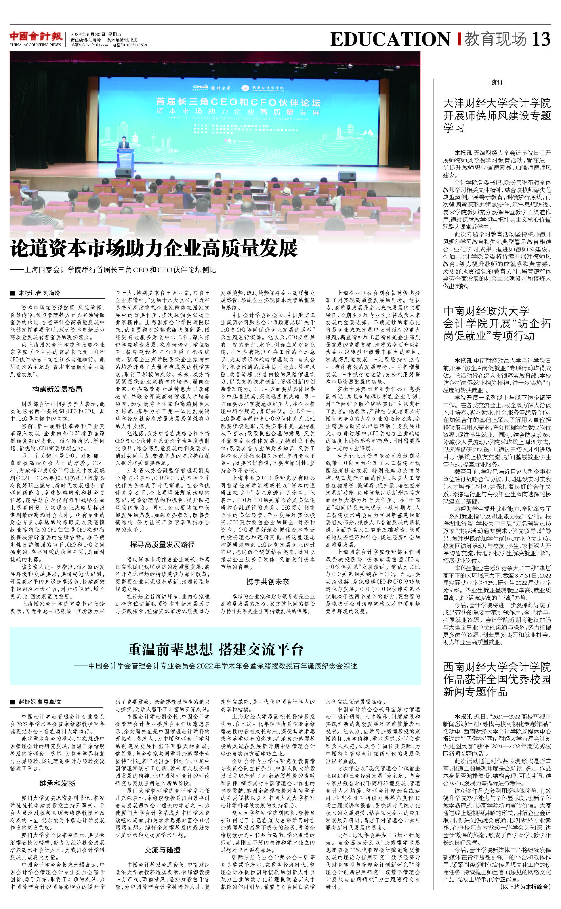 基地动态 | 中国会计报聚焦我中心等承办的中国会计学会管理会计专业委员会2022年学术年会暨余绪缨教授百年诞辰纪念会