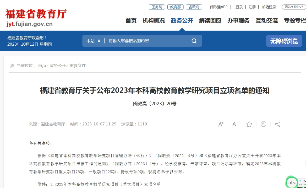 2023年10月7日,福建省教育厅公布了2023年福建省本科高校教育教学改革研究项目立项名单(闽教高号[2023]4号)。厦门大学会计发展研究中心蔡宁教授主持的“二十大精神引领下的会计学本科教学改革研究”获批为2023年福建省本科高校重大教育教学改革研究项目。