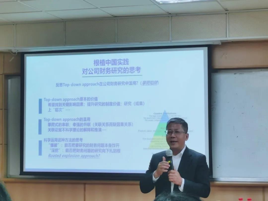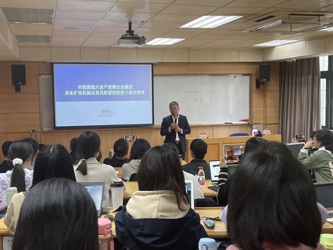 讲座的下半场,广州大学校长魏明海教授以《对我国超大资产规模企业集团资本扩张机制及其风险管控的若干初步思考》为题,提出了八个值得大家共同思考和研究的问题。