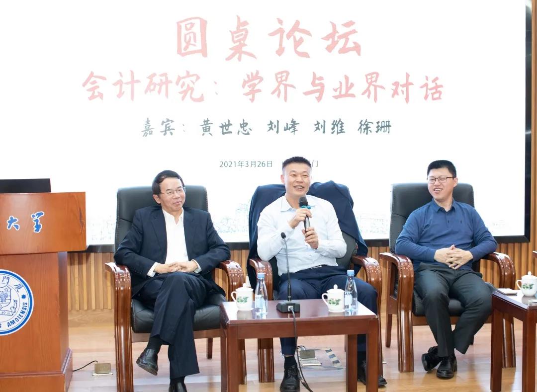 2021年3月26日晚上,“百年家澍”系列学术活动第七讲圆桌论坛在科学艺术中心一号会议室举行。此次论坛的主题为“会计研究:学界与业界对话”,论坛专家为厦门国家会计学院黄世忠教授、厦门天健咨询有限公司徐珊博士、容诚会计师事务所刘维博士、厦门大学刘峰教授。