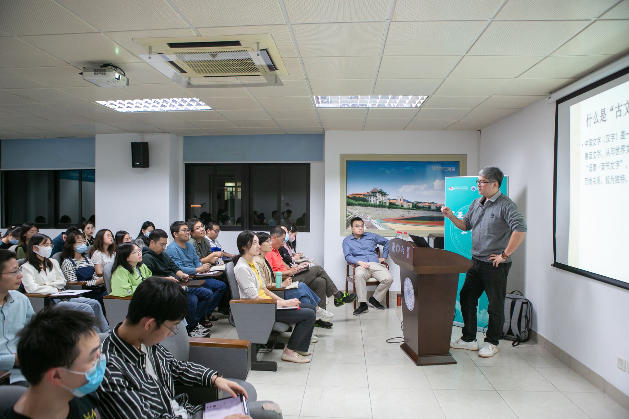 2022年10月18日晚上,第九讲“冠亚交叉学科工作坊”在线上线下同步举行。在刘峰教授的主持下,本期邀请到了厦门大学人文学院中文系张惟捷教授,带来主题为“漫谈古文字考释的前世今生”的讲座。厦门大学人文学院中文系张惟捷教授、管理学院刘潇肖副教授、熊枫副教授、刘馨茗副教授、申屠李融助理教授、郭睿助理教授、李胜难助理教授、何源助理教授以及博士研究生60余位参加本次讲座。