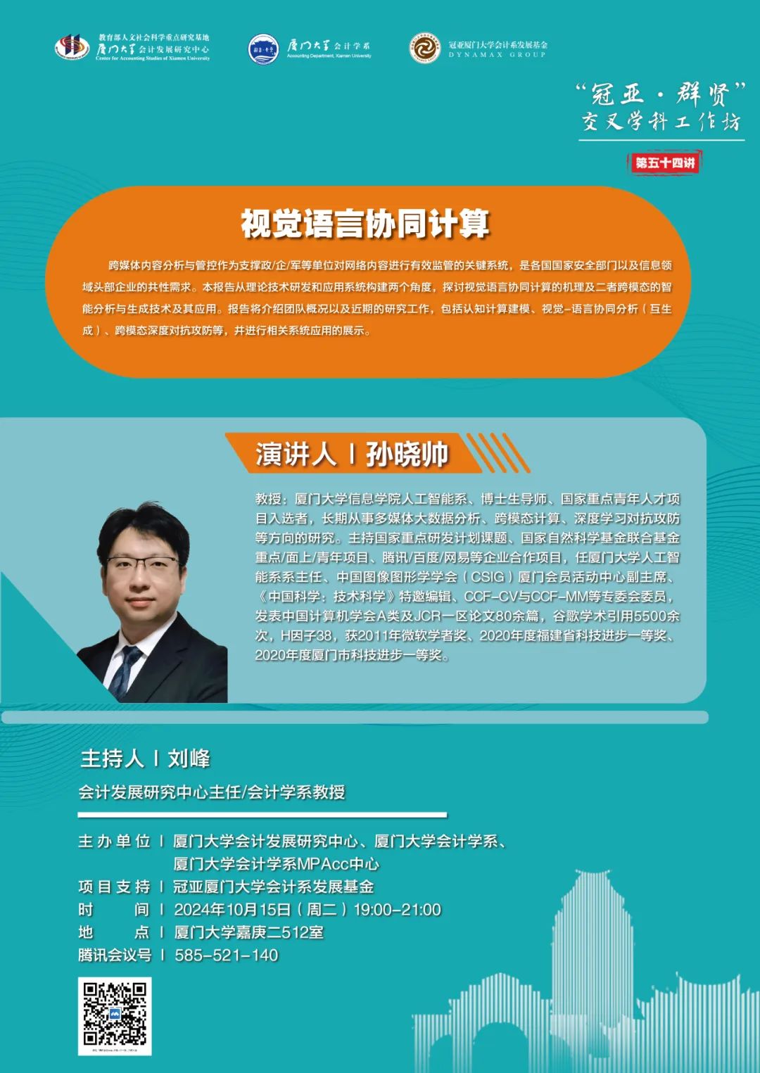 厦门大学会计学科历来注重学科交叉。2017年厦门大学会计学系设立“群贤”交叉学科论坛,已举办22期;2022年厦门大学会计发展研究中心设立“冠亚”交叉学科工作坊,已举办23期。经商定,两个交叉学科论坛自第46期起,合并为“冠亚·群贤”交叉学科工作坊,由厦门大学会计发展研究中心、厦门大学会计学系和厦门大学会计学系MPAcc中心联合主办,并获 “冠亚厦门大学会计学系发展基金”的支持。目前的计划是每月上、下旬各一次。
