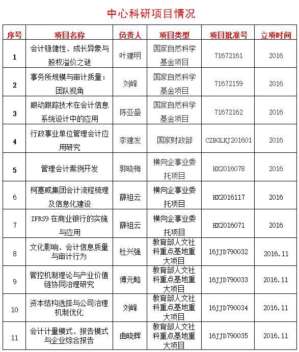 会计计量模式、报告模式与企业综合报告于2016年11月3日立项为教育部重点研究基地重大项目,立项批准号为16JJD790035。