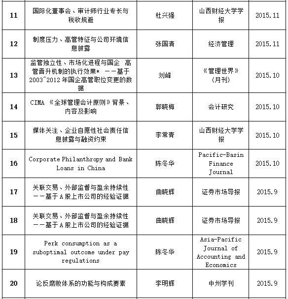 该研究期间内,我们的研究进展如下:SSCI期刊接受并Online First论文一篇:Culture, Marketization, and Owner-Manager Agency Costs: A Case of Merchant Guild Culture in China,Journal of Business Ethics, Forthcoming.