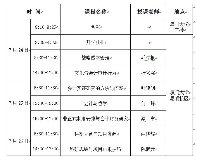 为进一步帮助高校教师提升科研能力和教学水平,教育部人文社会科学重点研究基地厦门大学会计发展研究中心将于2019年7月24-26日在拥有“海上花园学府,中国南方之强”的厦门大学思明校区举办“第四期青年骨干教师专题研修班”。