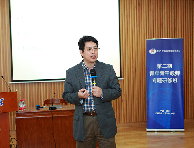2016年12月18-20日,冬日和煦,静谧祥和,由厦门大学会计发展研究中心主办的“第二期青年骨干教师专题研修班”在被誉为“南方之强”和“海上花园”的厦门大学举办。12月18日上午,在主校区的科学与艺术中心举行了简朴而隆重的开学典礼。厦门大学会计发展研究中心曲晓辉教授、刘峰教授、傅元略教授、陈少华教授以及来自全国各地多所高校的90多位青年教师出席了开班仪式。刘峰教授受邀为开班典礼致词,简要介绍了厦门大学会计发展研究中心和会计系以及主办的《当代会计评论》学术期刊,傅元略教授主持了开班典礼。