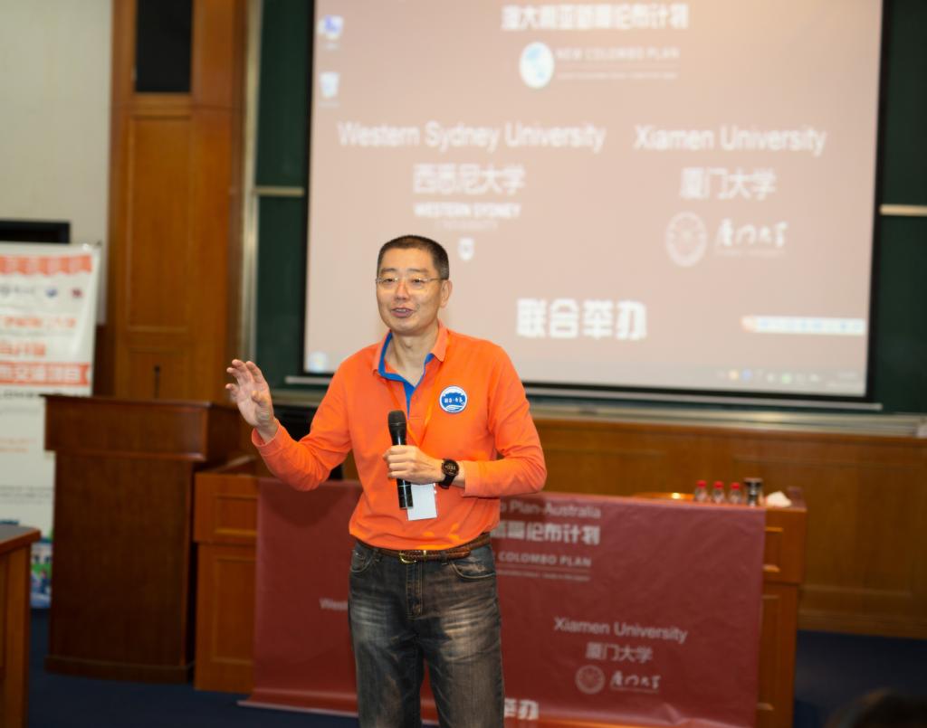 接下来刘峰教授则用两则小故事表达了此次新哥伦布交流项目所代表的中国与澳大利亚、以及厦门大学和西悉尼大学的渊源:少年马云与澳大利亚Morley父子的交流和沟通是他认识世界,并投身互联网、成立阿里巴巴的重要契机;而此次两校合办的新哥伦布交流项目的两位主要推动者:刘峰教授和Wu Huiying博士之间的首次交流也可以追溯到若干年前。刘峰教授表示希望西悉尼的同学们“入乡随俗”,更多地与厦门大学的同学、厦门当地市民进行交流,深入了解厦门,收获深入而独特的体验。