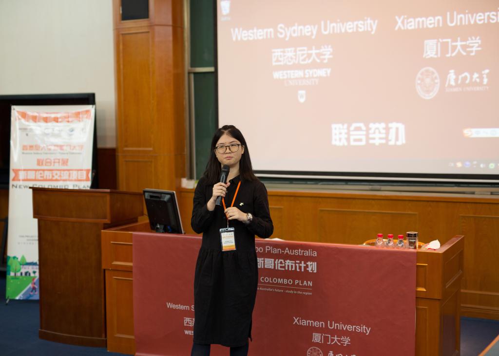 紧接着,分别来自西悉尼大学和厦门大学的Sasha Van Der Meer和林晨珺同学作为学生代表在开幕式上发言,两位同学表示很高兴能通过这次机会结识来自大洋彼岸的朋友们,希望在接下来的两周里通过交流,更深入地了解双方的文化,留下美好的体验。