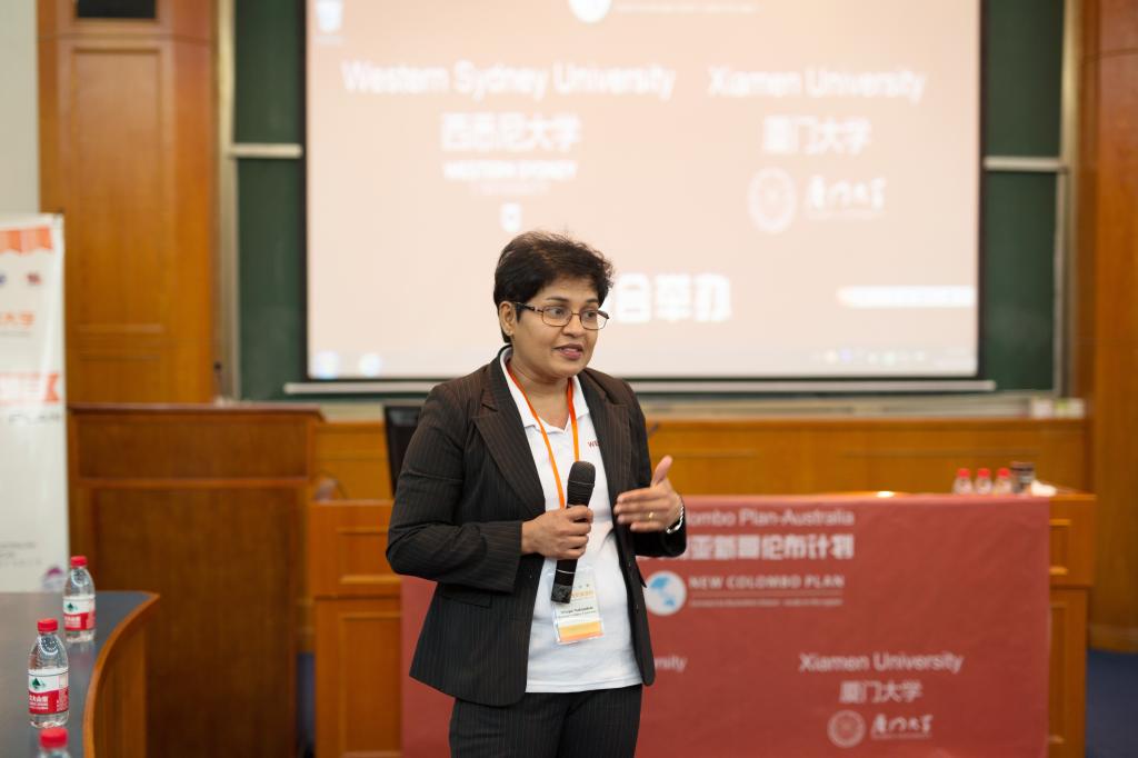 随后,西悉尼大学的带队老师DilupaNakandala博士发表简短致辞,表示澳大利亚政府一直以来都积极支持教育的国际交流与合作;中国近些年来发展迅速,是国际舞台上不可忽视的一部分;此次中澳两国学校之间的交流活动具有重要意义。DilupaNakandala博士还对积极促成此项目的刘峰教授和Wu Huiying博士表示感谢。